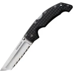 Model – CS29ATS. Cold Steel 29ATS – Large Voyager Lockback Stonewash Finish Tanto Blade Knife with Black Griv-Ex Handle. 5.25″ closed. 4″ stonewash finish serrated AUS-10A stainless tanto blade. Black Griv-Ex handle. Thumb stud. Pocket clip. Lanyard hole. Boxed. Made in Taiwan.